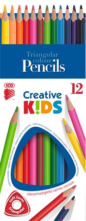 Színes ceruza készlet, háromszögletű, ICO "Creative kids", 12 különböző szín