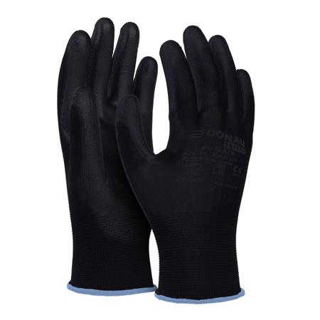 Szerelőkesztyű, PU, DONAU "Safety", 9/L méret, fekete